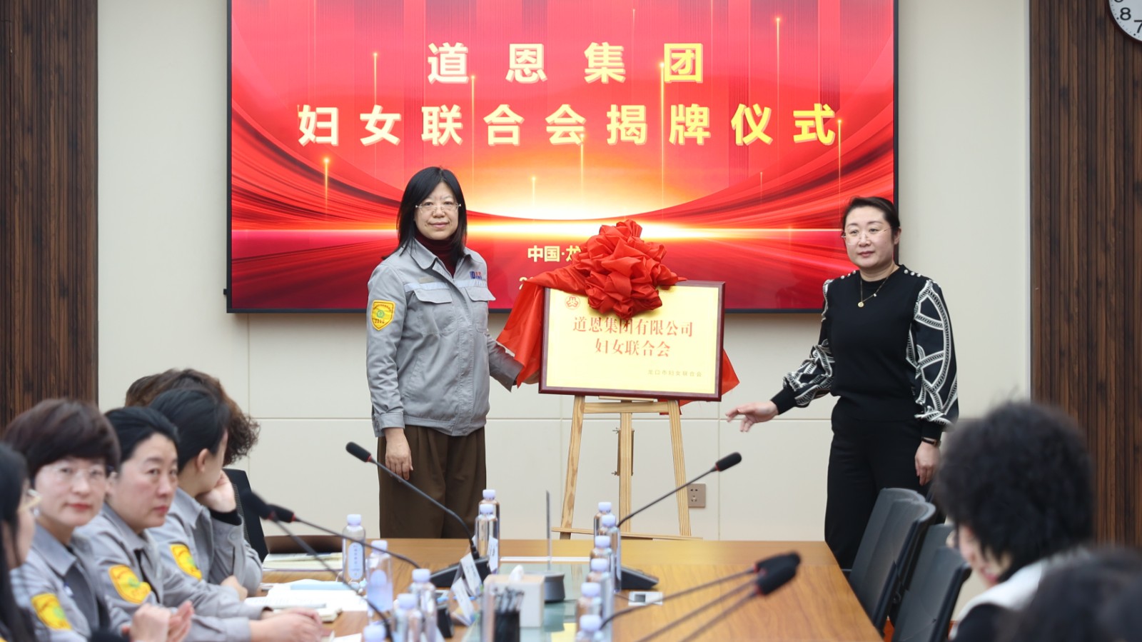 车静主席和刘丽丽主席为PA视讯 妇联揭牌